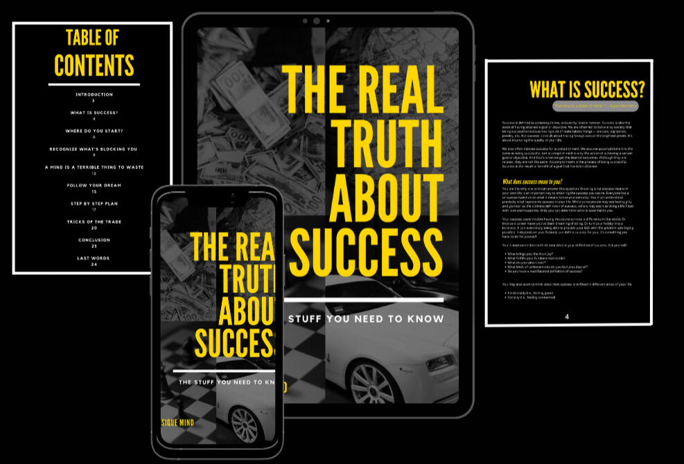 The Truth About Success eBook is a short and snappy guide that cuts through the hype and gives you some straightforward truths about success and how you can achieve it.It is not just another “get rich quick” scam of a book.In this ebook, you are going to learn secrets that successful people already know - secrets that were withheld from you because they are just so simple.